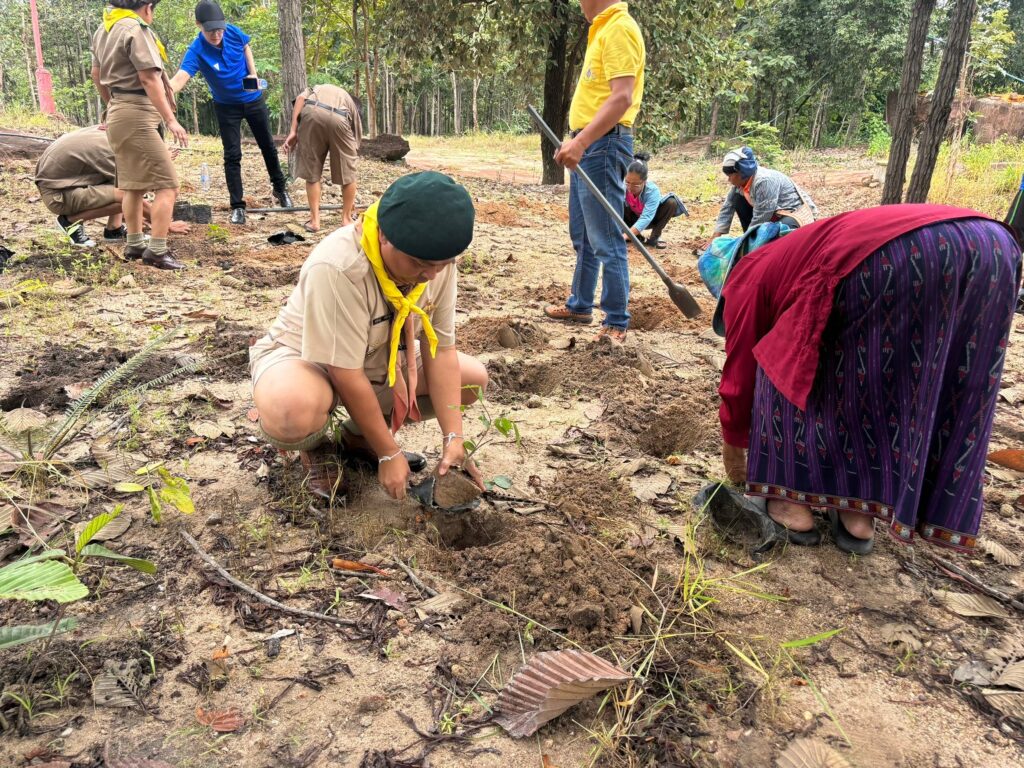 นางสาวพรธนธรรศน์  พันหล่อมโส ผู้อำนวยการ สกร.ระดับอำเภอไชยวาน พร้อมด้วยคณะครูและบุคลากรทางการศึกษา จัดโครงการค่ายลูกเสือจิตอาสา โดยมีกิจกรรมปลูกป่าและฟังธรรมเทศนา ณ วัดป่าภูต้องมนต์ บ้านโนนสมบูรณ์ หมู่ที่ 6 ตำบลโพนสูง อำเภอไชยวาน จังหวัดอุดรธานี