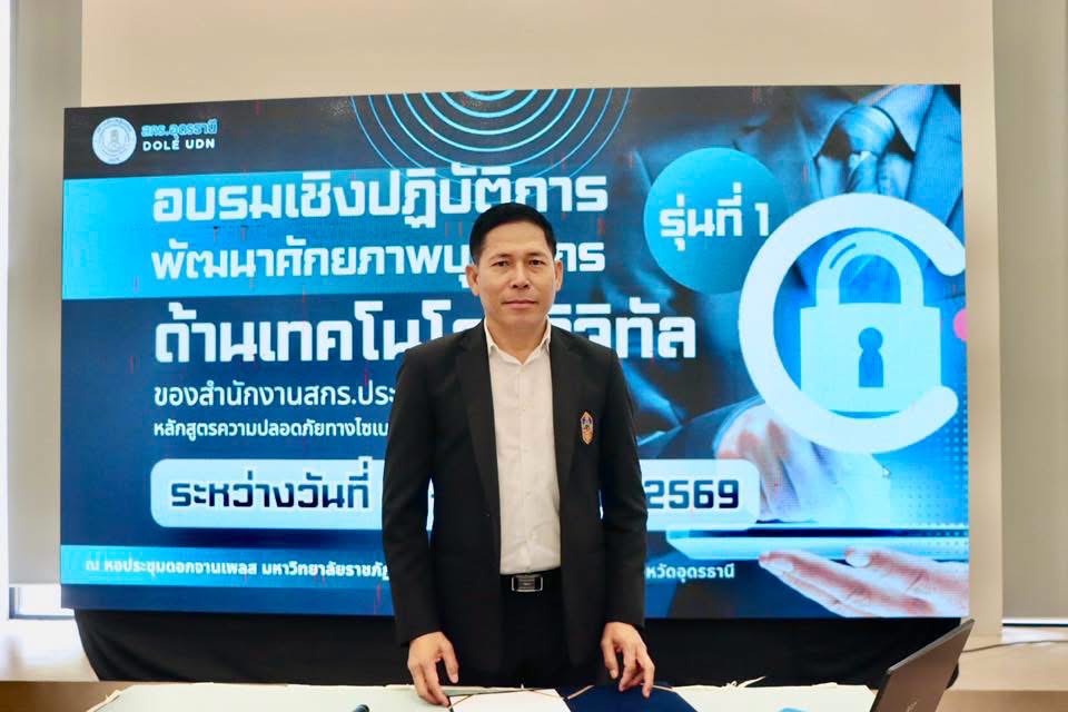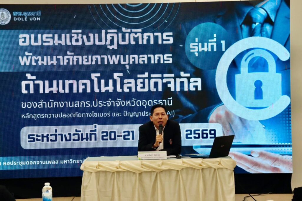 นางภาวิณี อรัญปักษ์ ผู้อำนวยการ สกร.ระดับอำเภอไชยวาน มอบหมายให้บุคลากร เข้าร่วมโครงการอบรมเชิงปฏิบัติการ “พัฒนาศักยภาพบุคลากรด้านเทคโนโลยีดิจิทัล หลักสูตรความปลอดภัยทางไซเบอร์ (Cyber Security) และปัญญาประดิษฐ์ (AI)” รุ่นที่ ๑ เพื่อยกระดับสมรรถนะบุคลากรให้เท่าทันการเปลี่ยนแปลงของเทคโนโลยีสารสนเทศ เเละก้าวสู่ยุคดิจิทัลอย่างมีประสิทธิภาพและยั่งยืน โครงการจัดขึ้นระหว่างวันที่ ๒๐–๒๑ เมษายน ๒๕๖๙ ณ หอประชุมดอกจานเพลส มหาวิทยาลัยราชภัฏอุดรธานี ศูนย์การศึกษาสามพร้าว โดยมีนายชินกร คะอังกุ ผู้อำนวยการสำนักงานส่งเสริมการเรียนรู้ประจำจังหวัดอุดรธานี เป็นประธานในพิธีเปิด และนายภาสกร เมิดจันทึก รองผู้อำนวยการสำนักงานส่งเสริมการเรียนรู้ประจำจังหวัดอุดรธานี เป็นผู้กล่าวรายงานวัตถุประสงค์ของการจัดงาน